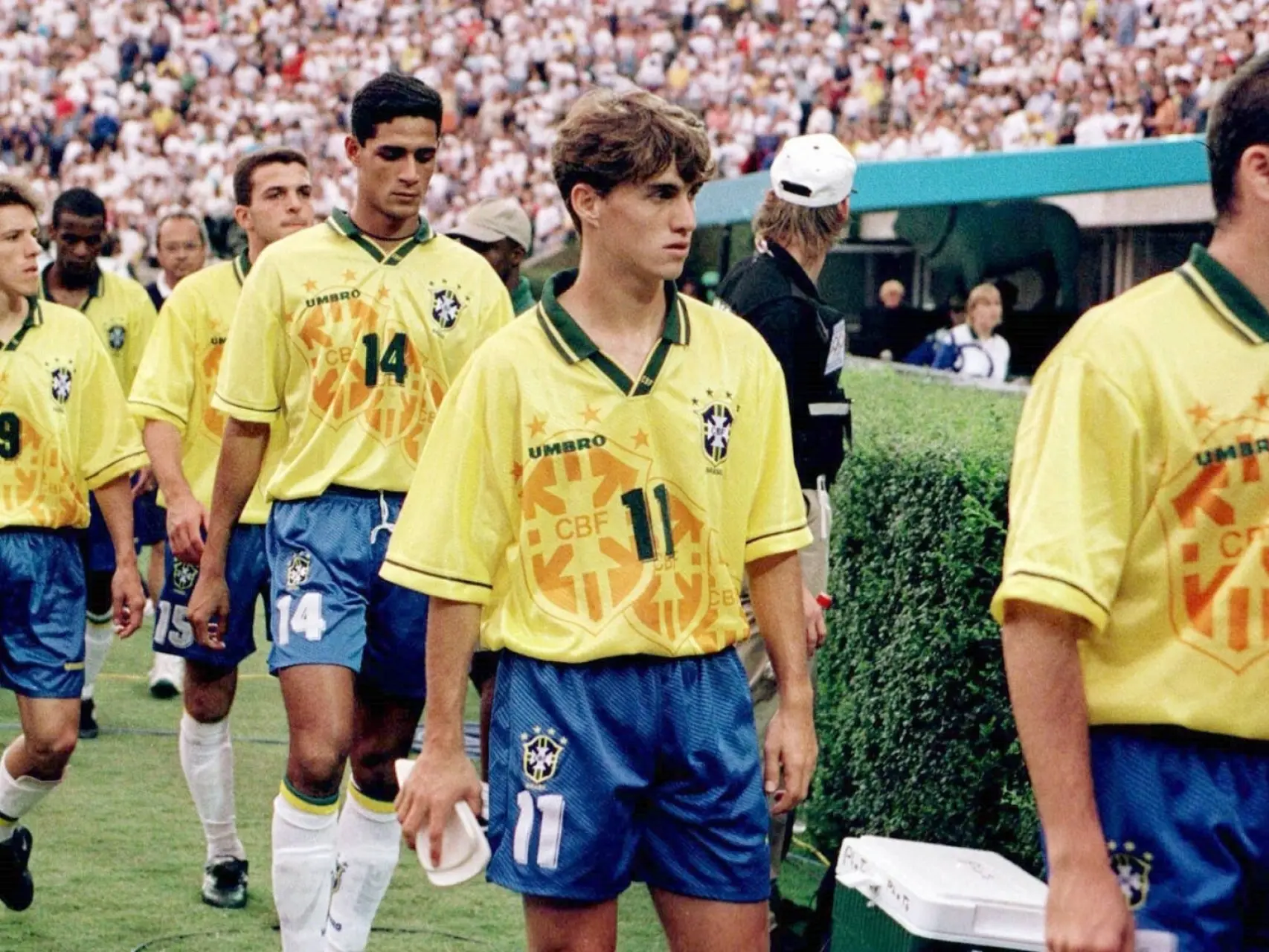 Ο Σάβιο σε πρώτο πλάνο με το νούμερο 11 της Βραζιλίας. Στο βάθος με το νούμερο 15 ο Ζε Ελίας.
