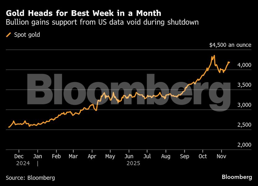 Ενισχύθηκε σήμερα (14/11) ο χρυσός, οδεύοντας προς την καλύτερη εβδομάδα του εδώ και έναν μήνα, καθώς οι επενδυτές αποκωδικοποιούν την αβεβαιότητα που δημιούργησαν στην αγορά τα νέα οικονομικά δεδομένα μετά την επαναλειτουργία της αμερικανικής κυβέρνησης. Κέρδη σημείωσε και το ασήμι.