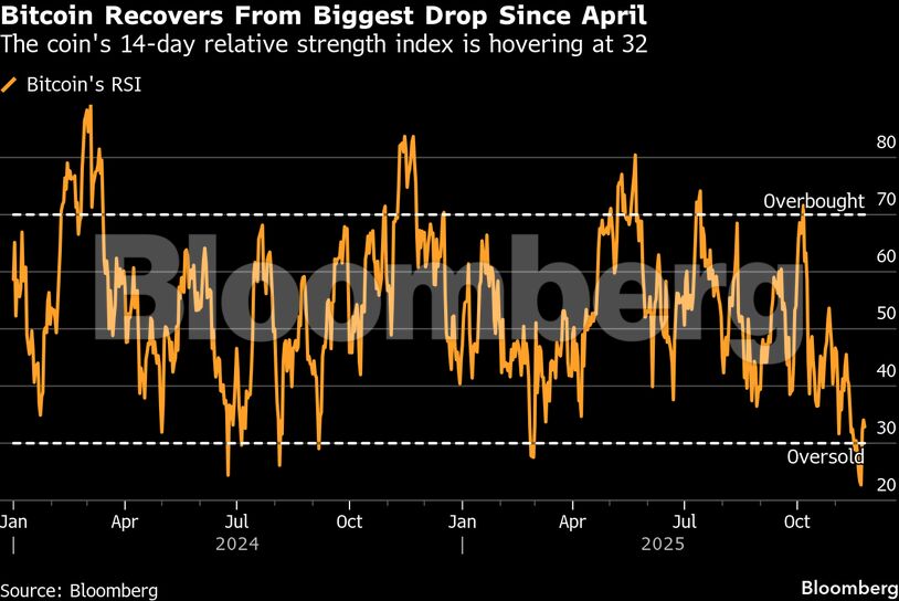 Ένας άλλος δείκτης που τραβά την προσοχή είναι ο δείκτης σχετικής ισχύος 14 ημερών του Bitcoin, ο οποίος βρίσκεται τώρα στο 32 μετά από μια απότομη πτώση από τις αρχές Οκτωβρίου. Μια τιμή 30 ή κάτω συνήθως σηματοδοτεί ένα υπερπουλημένο περιουσιακό στοιχείο, ενώ 70 και πάνω δείχνει το αντίθετο. Εν τω μεταξύ, η υπονοούμενη μεταβλητότητα στα options Bitcoin — ένας δείκτης της αναμενόμενης μελλοντικής κίνησης των τιμών — έχει επιστρέψει στα επίπεδα του Απριλίου, όταν οι ειδήσεις για τους δασμούς προκάλεσαν ένα κύμα πωλήσεων.