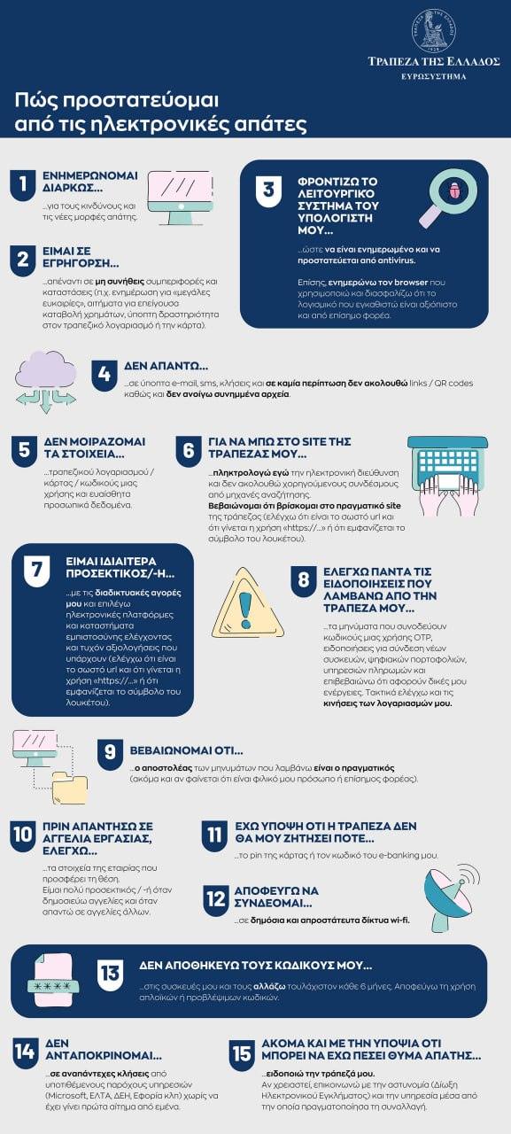 Η εκστρατεία ενημέρωσης και ευαισθητοποίησης για τις ηλεκτρονικές απάτες συνεχίζεται. Το Υπουργείο Προστασίας του Πολίτη, η Τράπεζα της Ελλάδος, η Ελληνική Αστυνομία και η Ελληνική Ένωση Τραπεζών ενώνουν τις δυνάμεις τους για την ενημέρωση του κοινού.