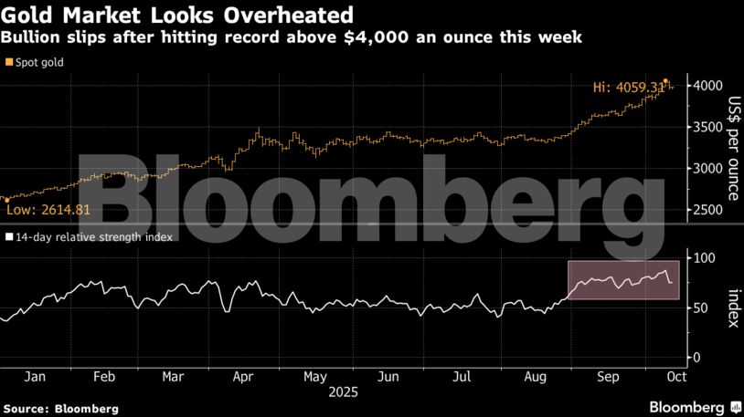 Η τιμή του χρυσού διαμορφώθηκε την Παρασκευή  στα 3.955 δολάρια ανά ουγγιά, έχοντας χάσει 1,6% στην προηγούμενη συνεδρίαση. Οι τεχνικοί δείκτες δείχνουν ότι το πολύτιμο μέταλλο βρισκόταν στα ανώτατα επίπεδα για το μεγαλύτερο μέρος του τελευταίου μήνα, γεγονός που ώθησε ορισμένους επενδυτές να κατοχυρώσουν κέρδη μετά το ανοδικό σερί τεσσάρων ημερών που κορυφώθηκε σε ιστορικό ρεκόρ 4.059,31 δολαρίων ανά ουγγιά την Τετάρτη.
