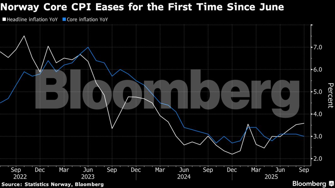Ο δείκτης τιμών καταναλωτή εξαιρώντας τον τομέα της ενέργειας, μειώθηκε στο 3% τον Σεπτέμβριο από το 3,1% τον Ιούνιο, σύμφωνα με τα επίσημα στοιχεία που δημοσίευσε η κρατική στατιστική υπηρεσία την Παρασκευή. Οι οικονομολόγοι που συμμετείχαν στην έρευνα του Bloomberg ανέμεναν 3,1%, ενώ η Norges Bank είχε προβλέψει άνοδο στο 3,2%.