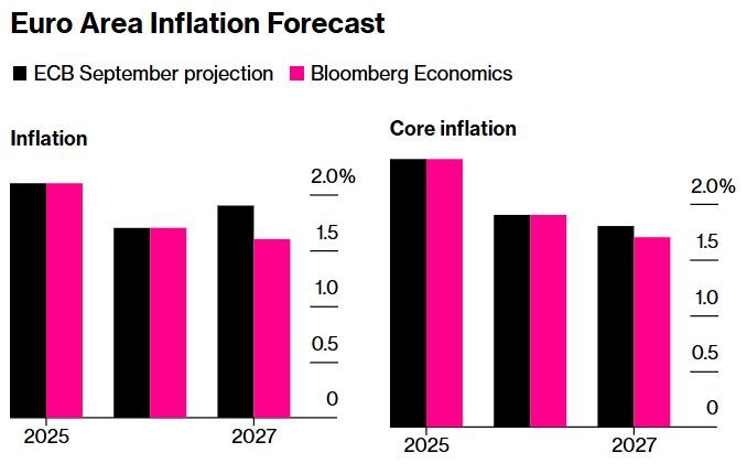Η ΕΚΤ αναμένεται να διατηρήσει τα επιτόκια αμετάβλητα για τέταρτη συνεχόμενη συνεδρίαση τον Δεκέμβριο. Ωστόσο, μια πιθανή προς τα κάτω αναθεώρηση των προοπτικών για τον  πληθωρισμό το 2027 – λόγω της πιθανής καθυστέρησης στο καθεστώς τιμολόγησης του άνθρακα της Ευρωπαϊκής Ένωσης – θα μπορούσε να ενθαρρύνει τους πιο επιφυλακτικούς αξιωματούχους να υποστηρίξουν μια μείωση.