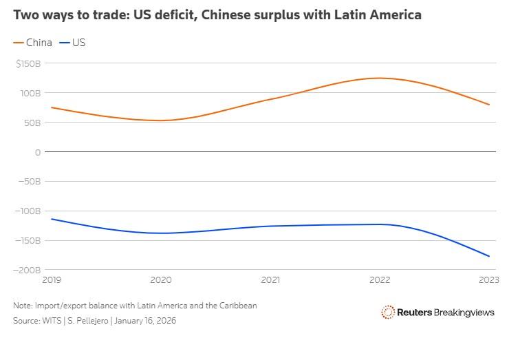 Με το εμπόριο μεταξύ Κίνας και Λατινικής Αμερικής και Καραϊβικής να φτάνει τα 515 δισεκατομμύρια δολάρια το 2024, και άλλοι μπορεί σύντομα να νιώσουν παρόμοια πίεση. Κινεζικές εταιρείες ελέγχουν ή λειτουργούν πλέον το ένα τρίτο των λιμένων στην περιοχή, εκτιμά το Κέντρο Στρατηγικών και Διεθνών Σπουδών. Μετά την παρέμβαση των ΗΠΑ στη Βενεζουέλα και τις επακόλουθες πολεμικές προειδοποιήσεις προς χώρες από την Κούβα μέχρι την Κολομβία, η γεωπολιτική παγίδα σφίγγει.