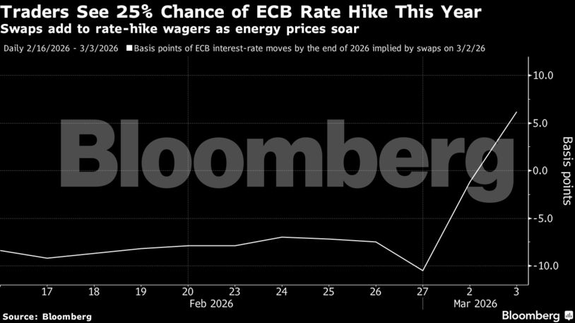 Οι αποδόσεις των βραχυπρόθεσμων γερμανικών ομολόγων, τα οποία είναι πιο ευαίσθητα στις μεταβολές της νομισματικής πολιτικής, αυξήθηκαν ταχύτερα σε σύγκριση με τους μακροπρόθεσμους τίτλους. Η απόδοση του διετούς γερμανικού ομολόγου ενισχύθηκε έως και κατά οκτώ μονάδες βάσης, φθάνοντας το 2,17%. Παράλληλα, οι αγορές χρήματος ενσωματώνουν πλέον πιθανότητα περίπου μία στις τρεις η ΕΚΤ να προχωρήσει σε νέα αύξηση επιτοκίων έως το τέλος του έτους.